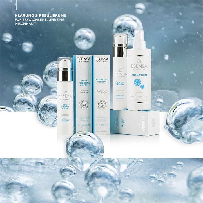 THERMAL ESSENCE ist auf die Bedürnisse unreiner oder fettiger Haut abgestimmt und verbindet die Phyto-Aroma-Thalasso Synergie von ESENSA MEDITERANA mit thermalem Quellwasser. Die Mineralquelle des Heiligen Stephan in Istrien ist reich an 13 natürlichen, wohltuenden Mineralien und ist bekannt für ihre heilende und beruhigende Wirkung bei verschiedenen Hautproblemen.